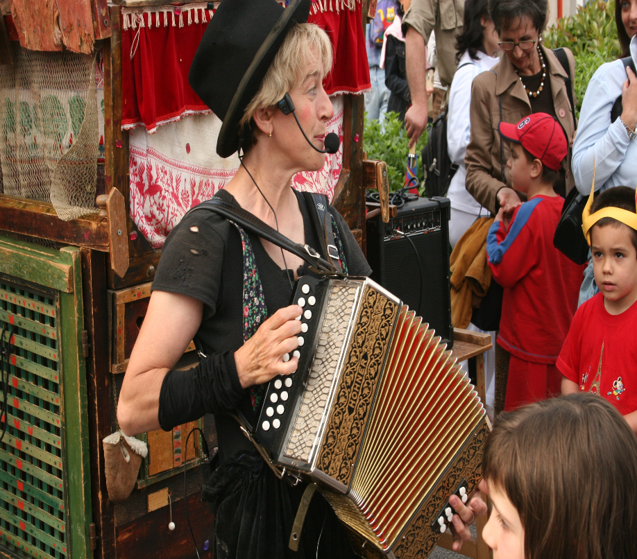 Lucia Osellieri realizza il suo teatrino su ruote LA CASA DEGLI GNOMI con l’aiuto di William Velishec artista falegname nel 1988 ispirandosi ad una fiaba di Gianni Rodari, ( la storia del falegname Tre Bottoni “… una casa così piccola costruita col cuore che può contenere tante persone … e se qualcuno vuole entrare c’è posto anche per lui !!!”) per esibirsi nei primi festival di teatro strada come burattinaia contastorie solista. (una delle poche presenti allora in Italia) da allora La casetta degli gnomi non si è mai fermata !
